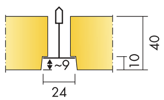 Klasszikus sarkos kialakítás, könnyen szerelhető látszóbordás rendszer T15 és T24-es rendszerhez. Minden lap egyesével, könnyedén bontható. Negyven mm-es vastagsága miatt megfelelő olyan körülmények közé, ahol szigorú követelmények vannak akusztikai szempontból, például amerikai stílusú nyitott irodákba.